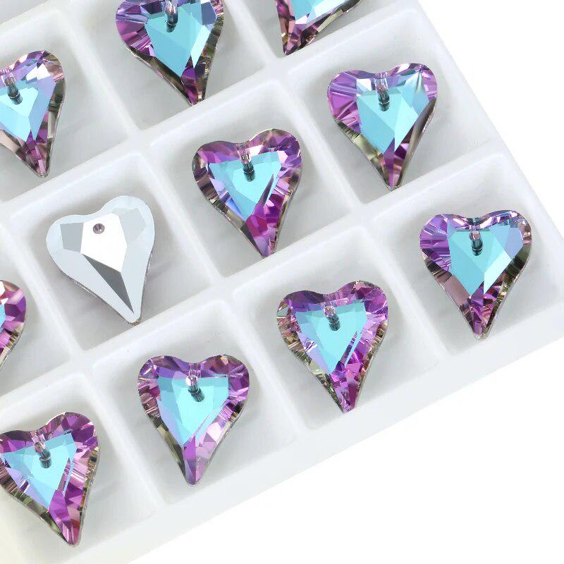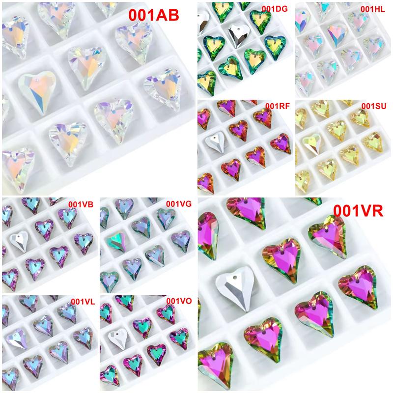 12/24PCS 17x14mm Crystal Heart Pendant Beads for Jewelry Making DIY Earrings Necklace Loose Beads Plating Color Accessory