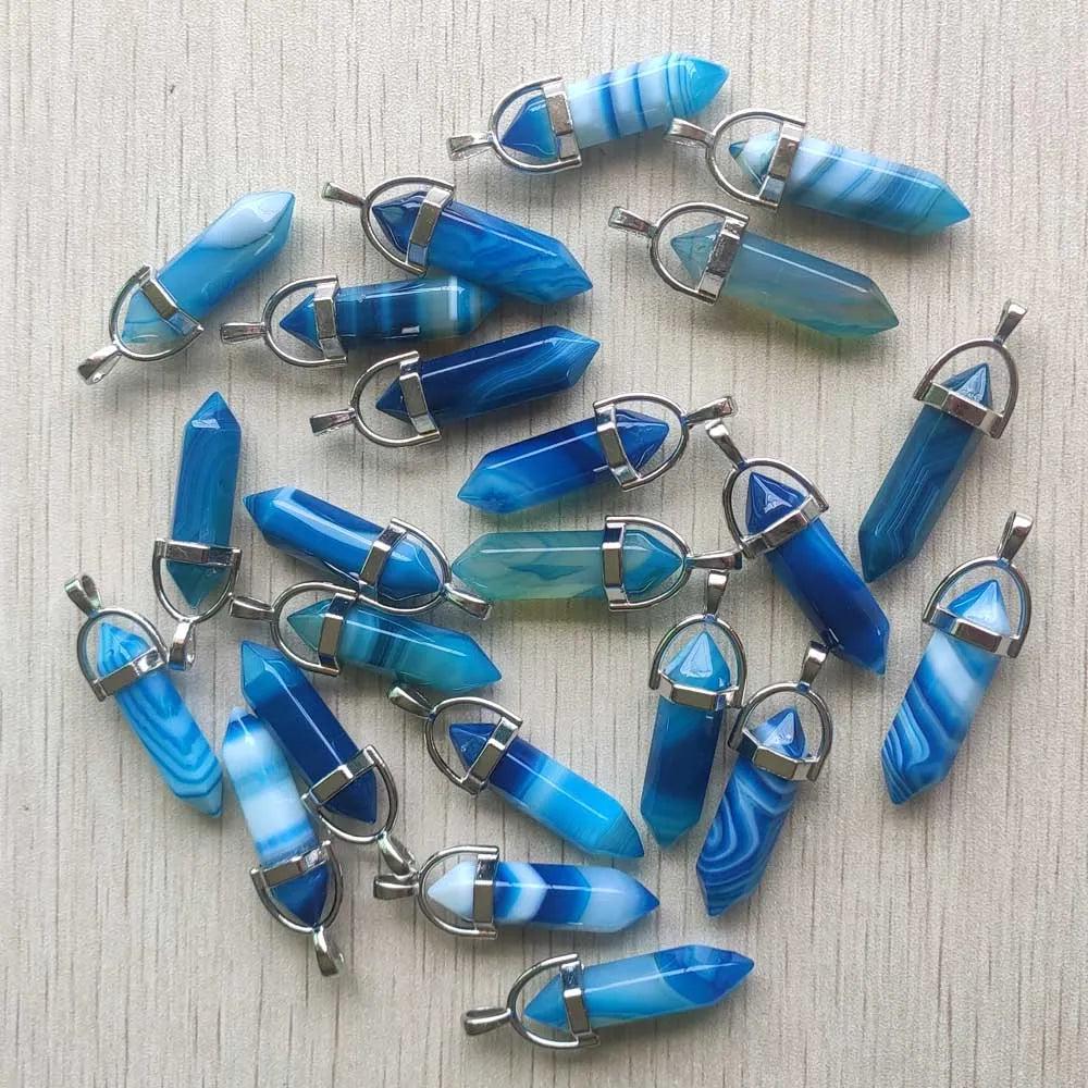 24pcs/lot stripe light blue agate onyx pillar point chakra charms pendants for jewelry making wholesale