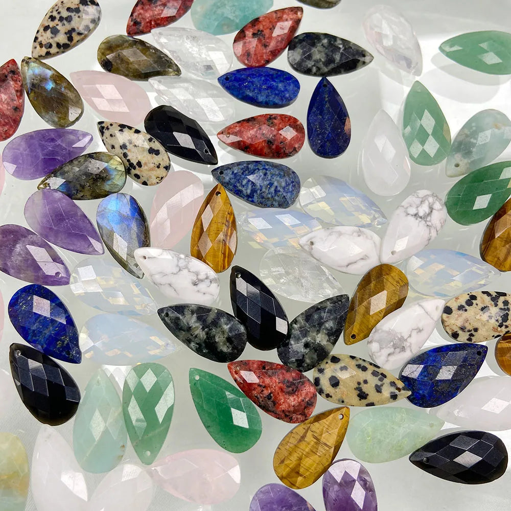 2PCS Natural Water Drop Stone 13X25mm Faceted Top Drilled Pendant Earrings Charm