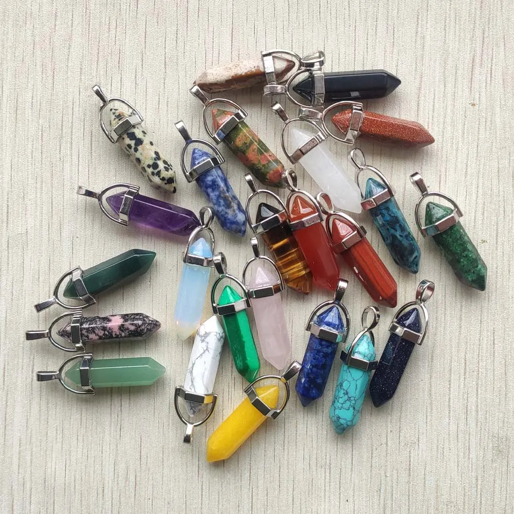 50pcs/Lot good quality mix Natural Stone pillar crystal Pendants for jewelry making necklaces