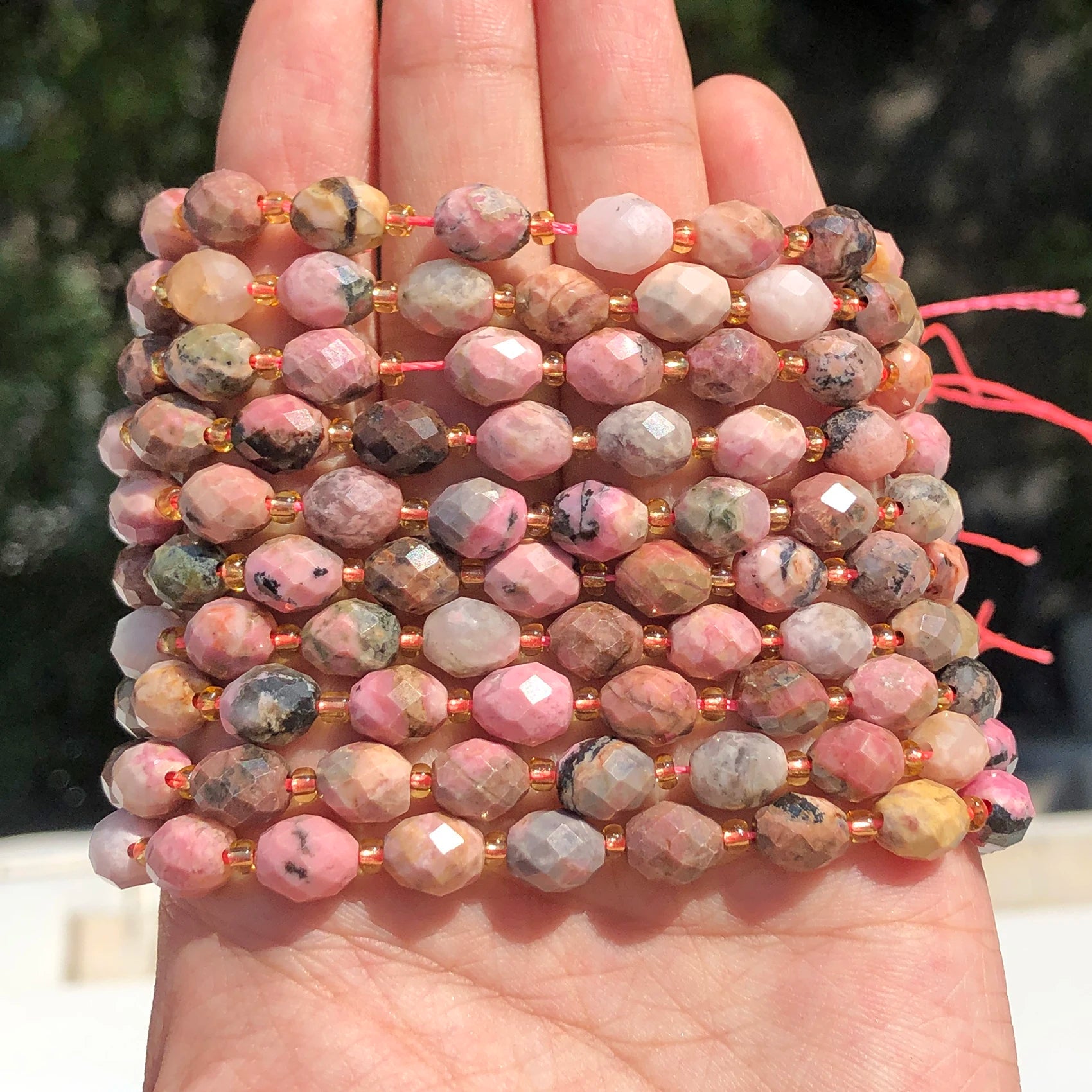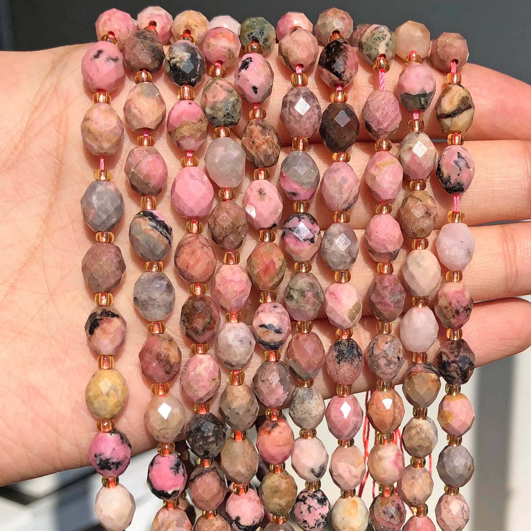 8x7mm AAA Faceted Oval Rhodonite Beads Natural Stone Pink Rice Shape