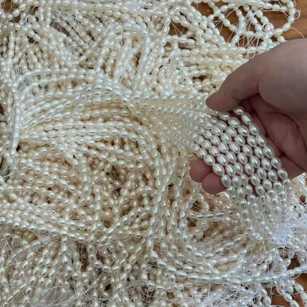 AAA Smooth Selected Natural Freshwater Pearl Rice Loose Jewelry Making -36cm