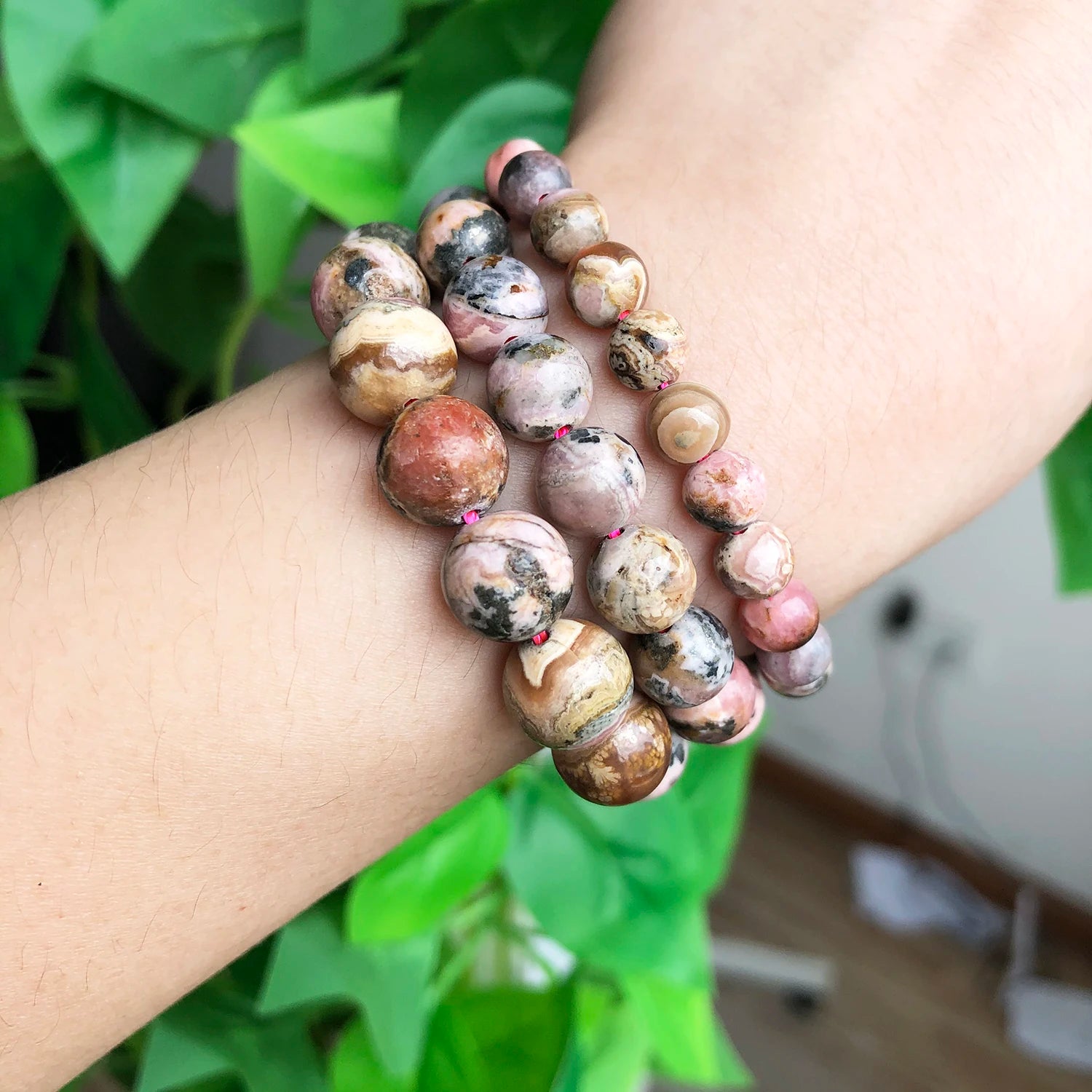 B+ Natural Argentina Rhodochrosite Stone Round Loose Beads 15'' strand- 6 8 10mm