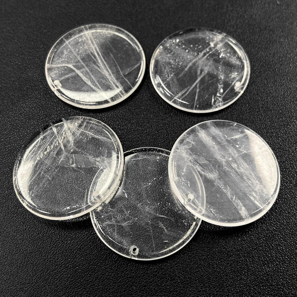 Flat Round Pendant 30mm Crystal Disc Shape Natural Stone Charm Pendant